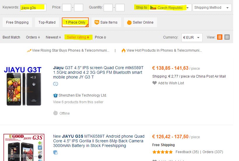 On aliexpress (analog of ebay) we register and start looking for the phone. Having found the right model, we see that we have enough options - what to choose from?