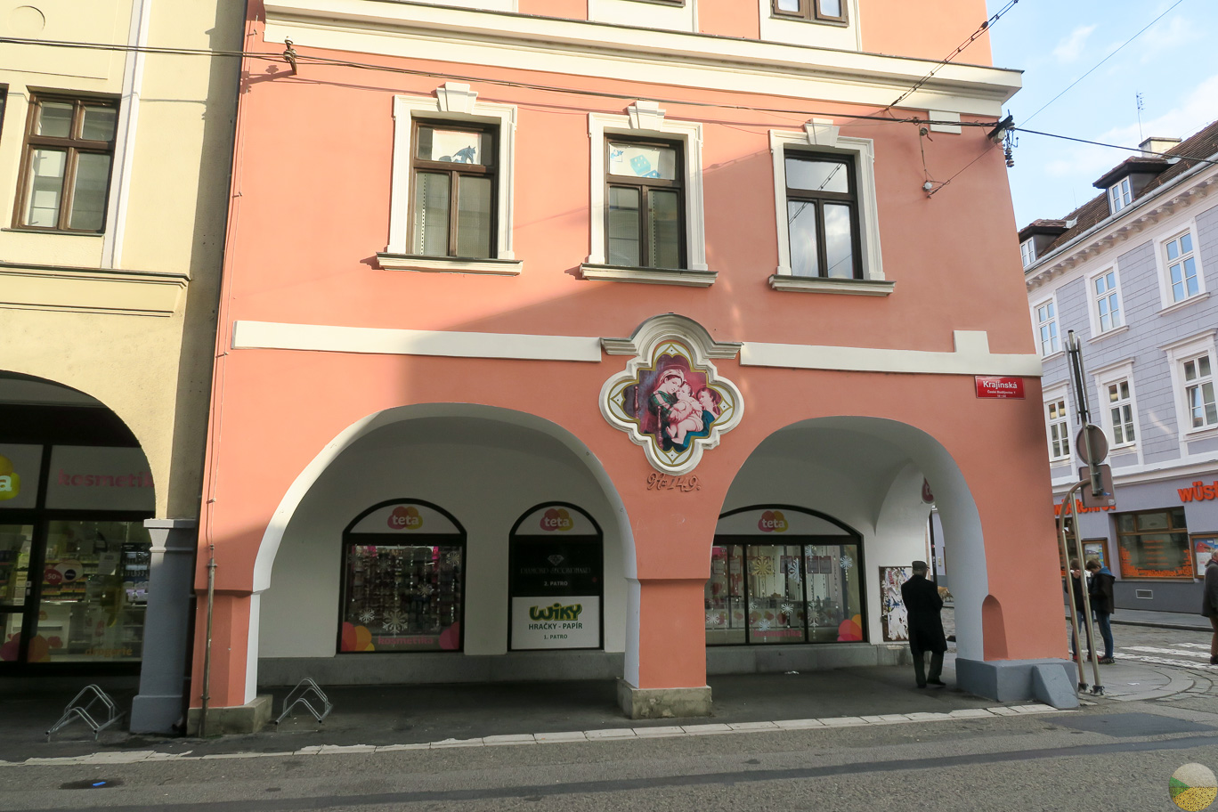 Details. Cool that in many Czech towns old inscriptions are found, washed and left alone. In Moscow they practice this too, good job.