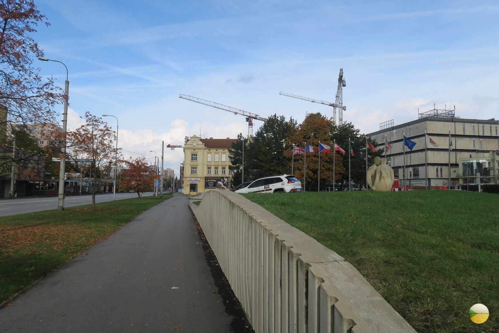 Around that time I understood what's wrong with the town. Unlike Prague, the town is not adapted for walking at all. Very wide roads, noise, transport rarely runs. In short, there are no people around. And where there are no people, the scenery is always shitty, because there's no one to try for.