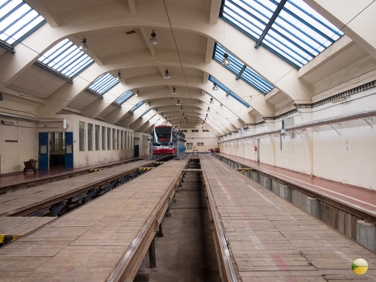 In the depot stood all tram models that run through the city. Around harsh noise - kids sit in every cabin and ring. Prague tram drivers love to ring their bell and chase away Prague drivers, of which there are plenty here.