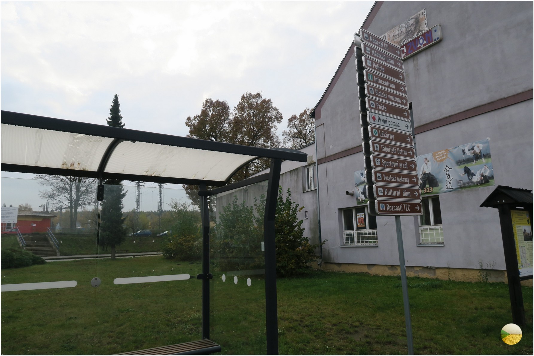 In the town, apparently, there's almost nothing. But the bus stop is good, covered. Weather, as you can see, is not great.