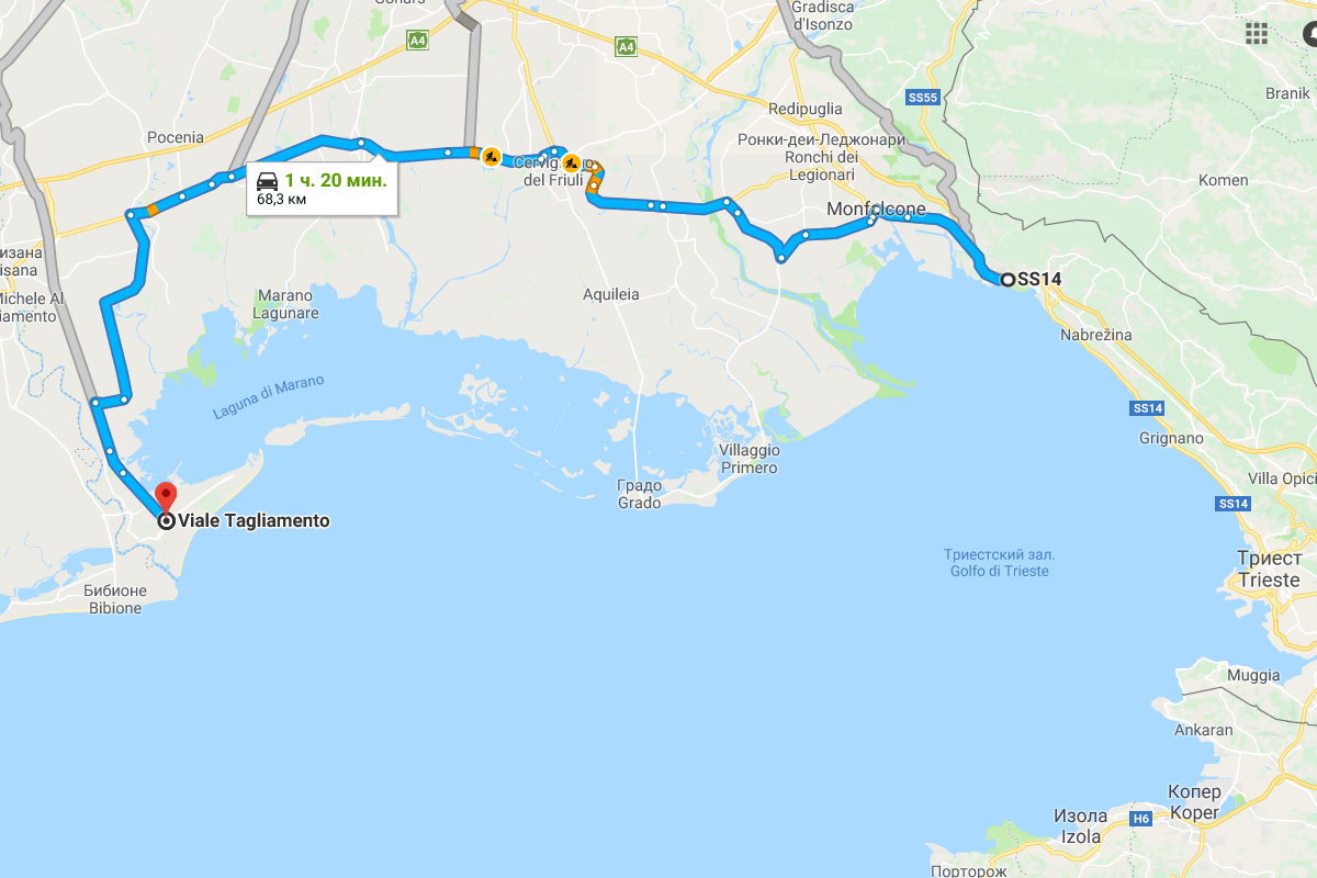 In this part of Italy beaches are sandy. As a result, you can't see the bottom even if the depth is only half a meter. It's quite shallow here, which is a big plus if you're vacationing with a child. But for an adult not much swimming. You have to go very far from shore. But that's scary even for me. So we went to beaches near the city of Trieste. There they're rocky, and there's practically no people, mostly locals.