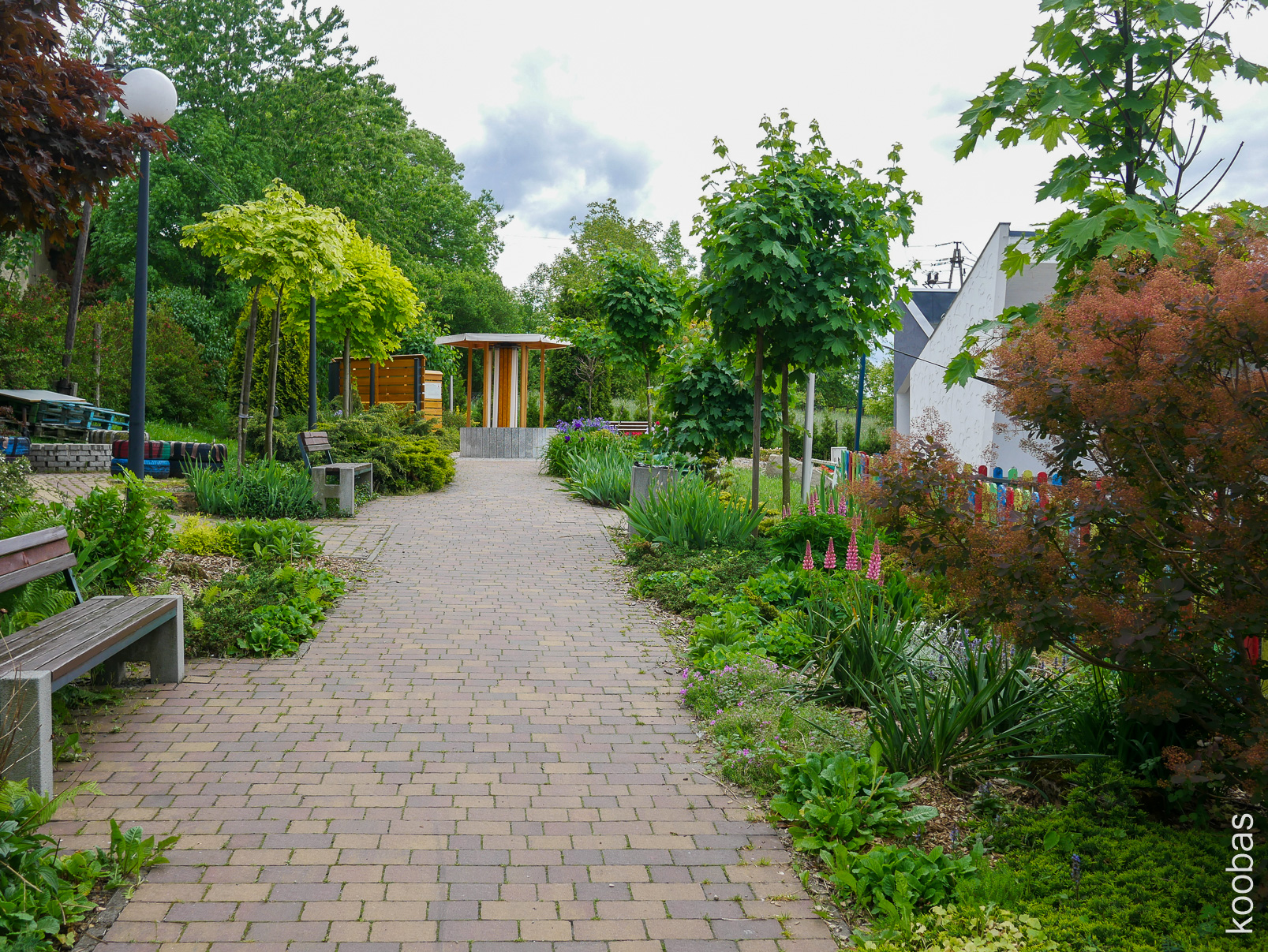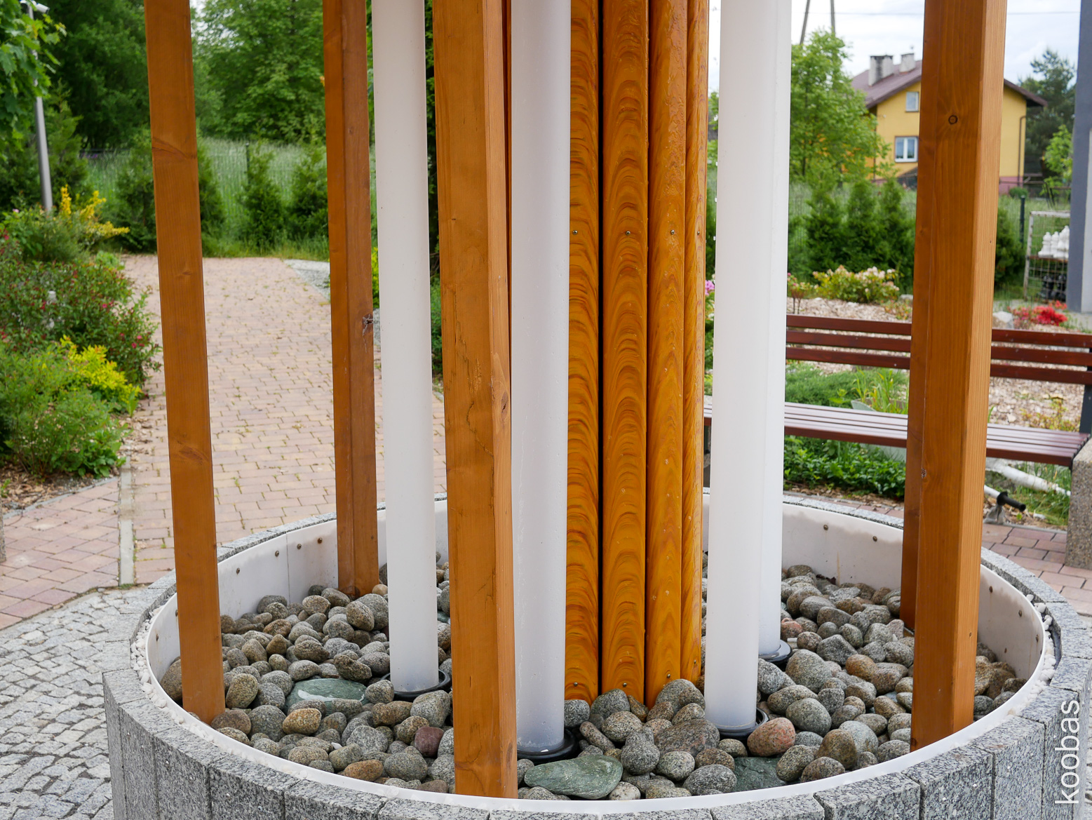 Park with fountain, stage