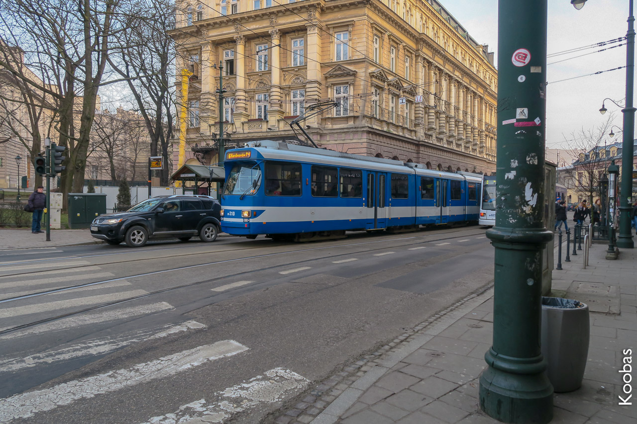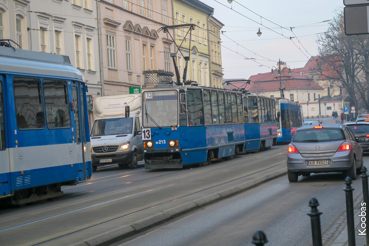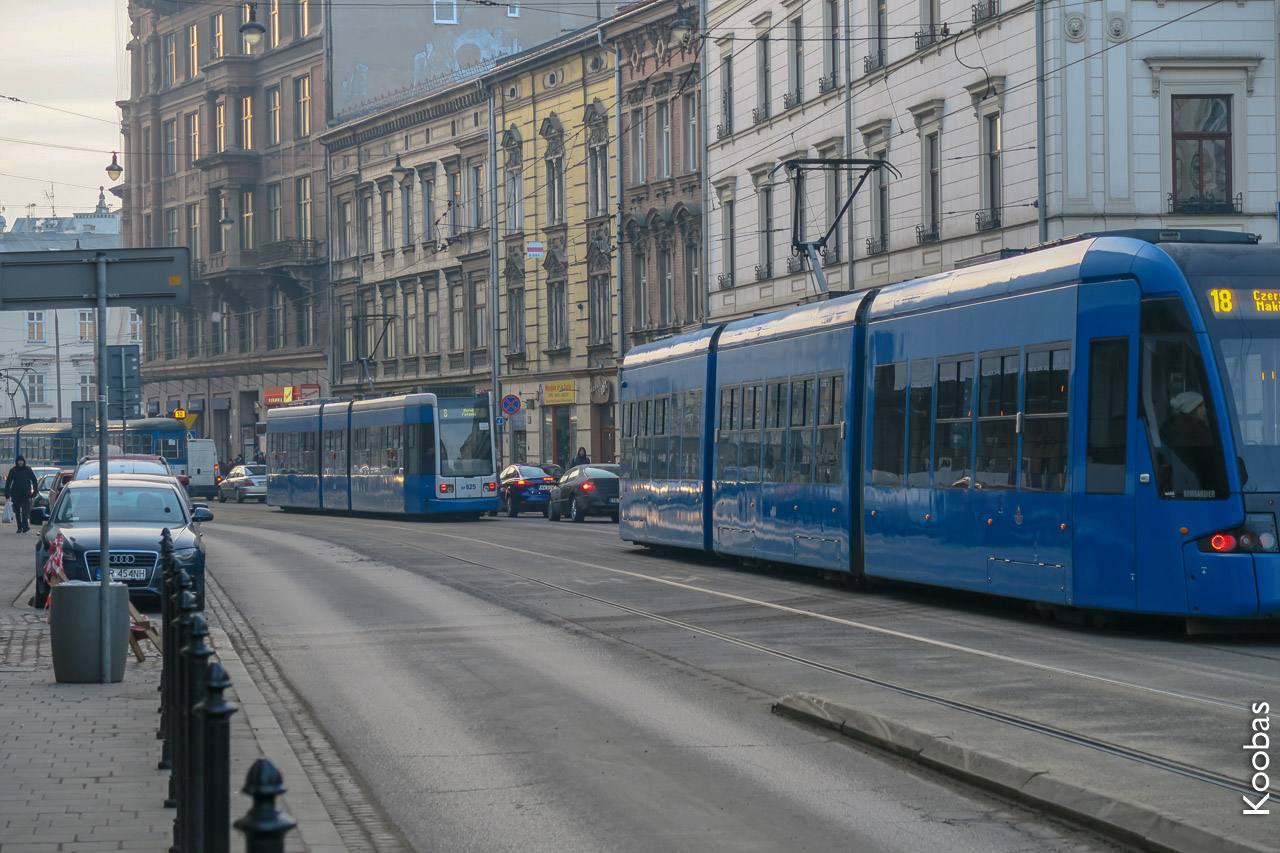 Krakow trams - blue, models are all different.