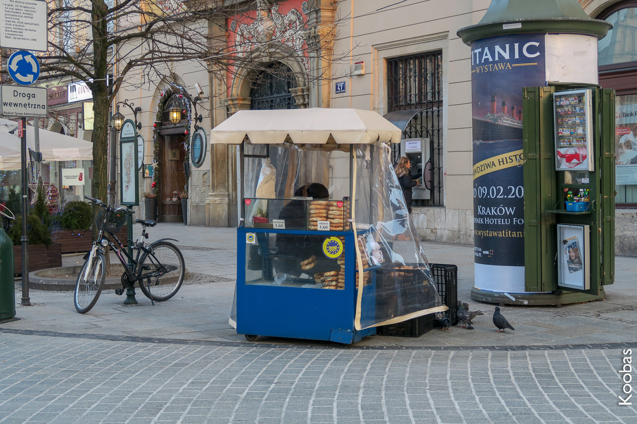 Krakow (or Polish?) feature - in the morning they sell bagels, stalls stand all over the city.