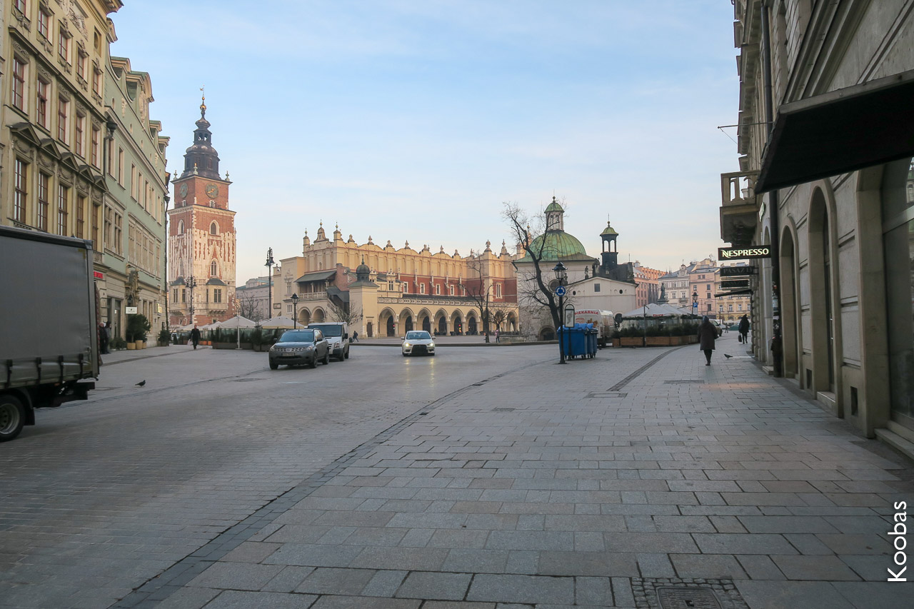 Krakow greets you with the fact that at 7 am there's almost nobody on the streets. Squares are unusually large compared to Prague.