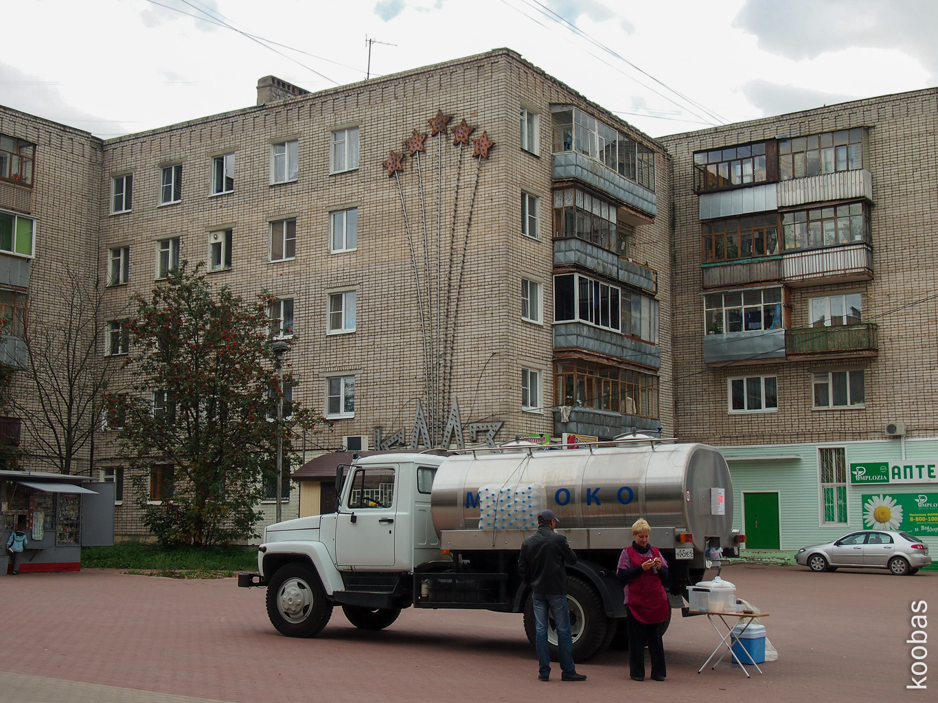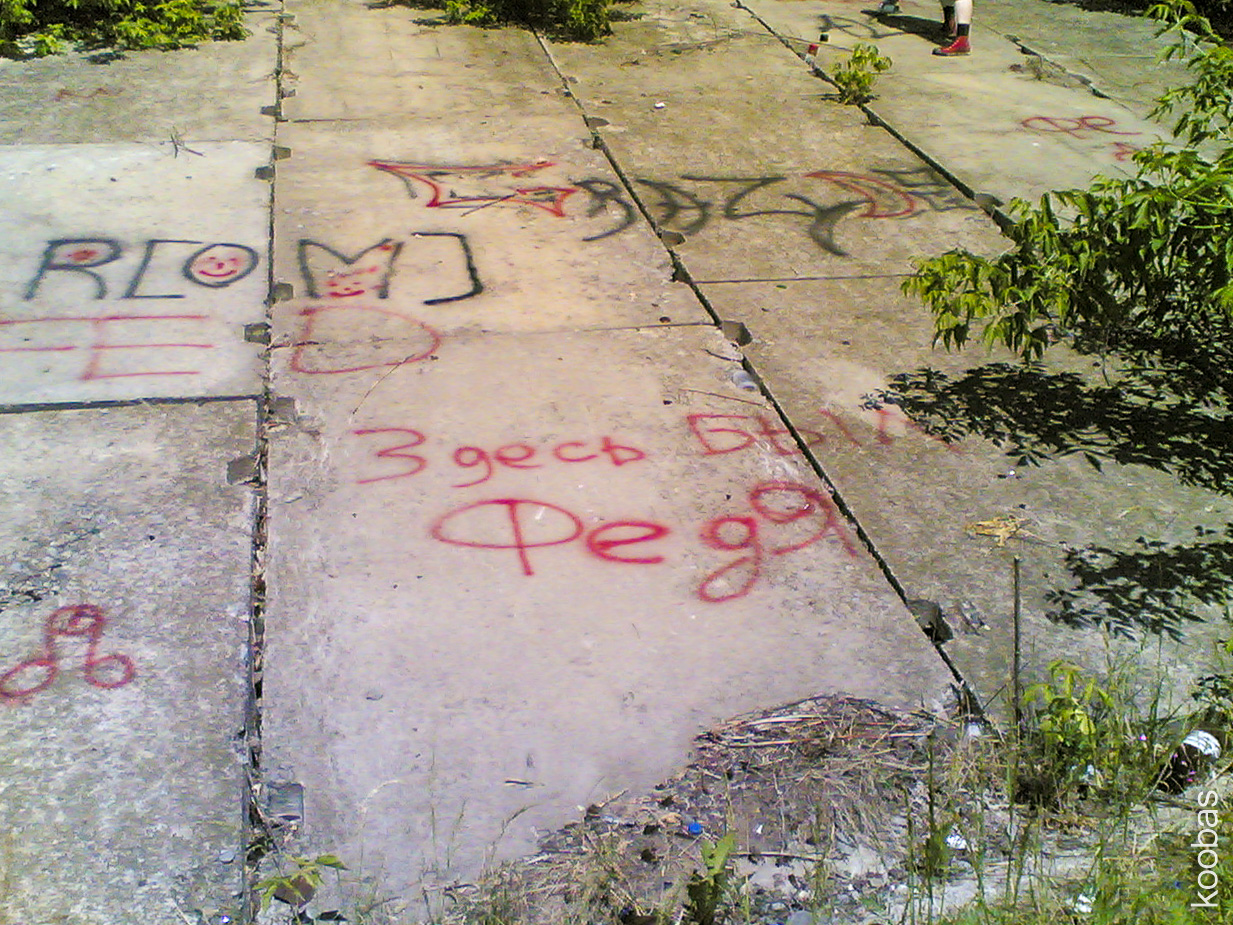 Behind on the building is an inscription I learned to read when I was 3 years old. I remember now word for word, letter for letter, to the details: "Glory to the Soviet people - the victorious people!"